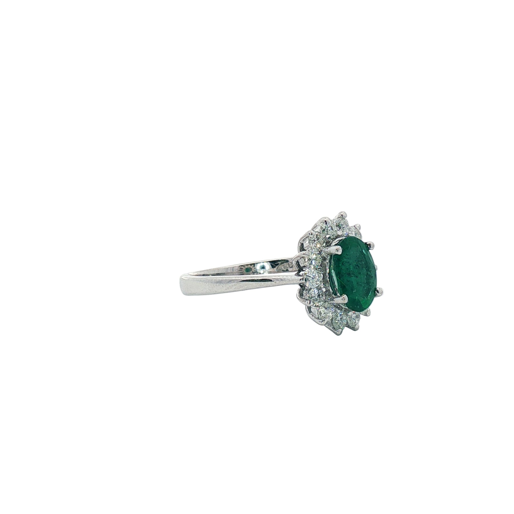 Oval Emerald Ring with Diamond Halo