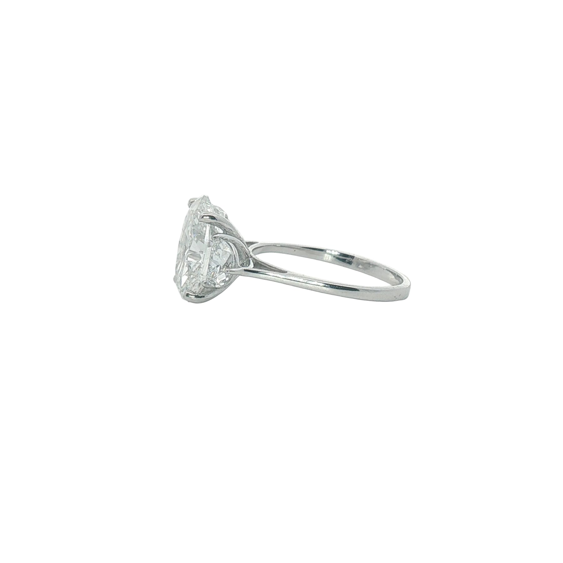 Oval cut lab diamond center stone 4.05Ctw, and half moon lab diamonds .83Ctw, E color, VS2 clarity.