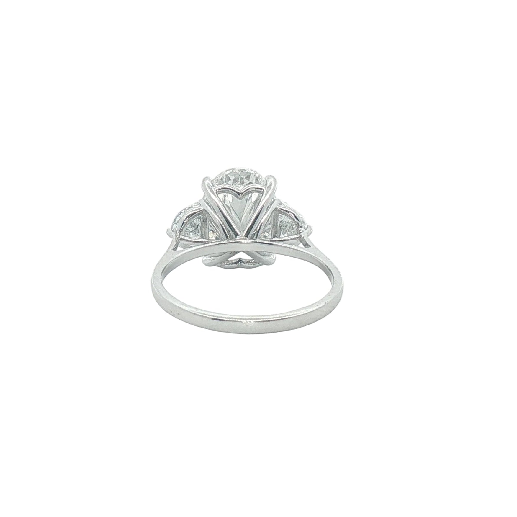 Three Stone Solitaire Oval Engagement Ring with Half Moon Side Stones